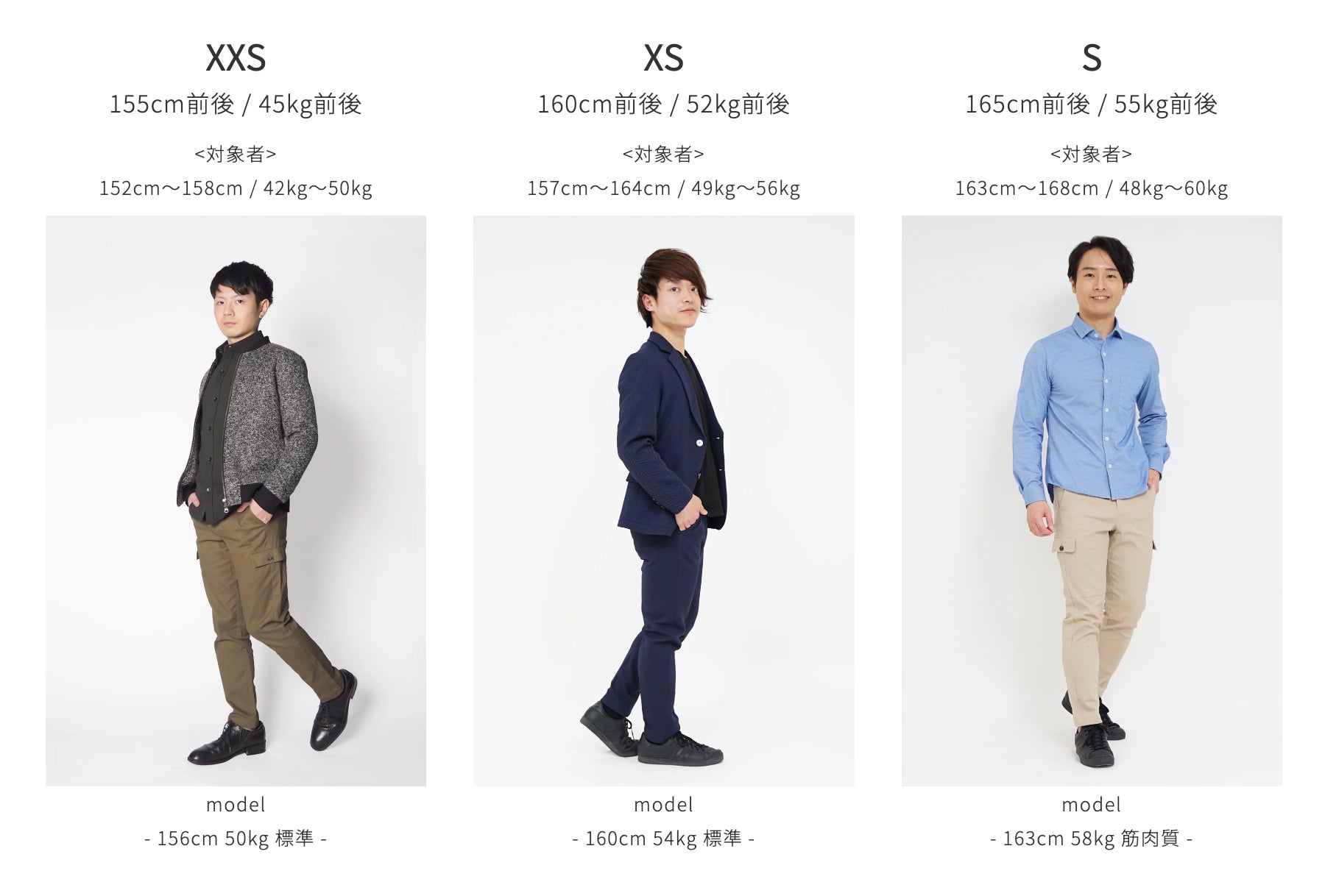 小柄男性をカッコよく見せるために、服の「丈」や「幅」、「素材」そして細部の作りまで徹底してこだわった小さいサイズ(XXS・XS・XSサイズ)のオリジナルメンズ服を、多数取り揃えています。