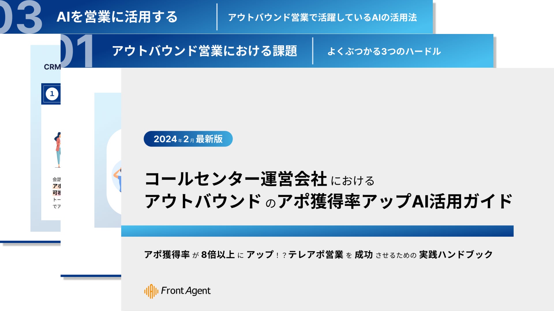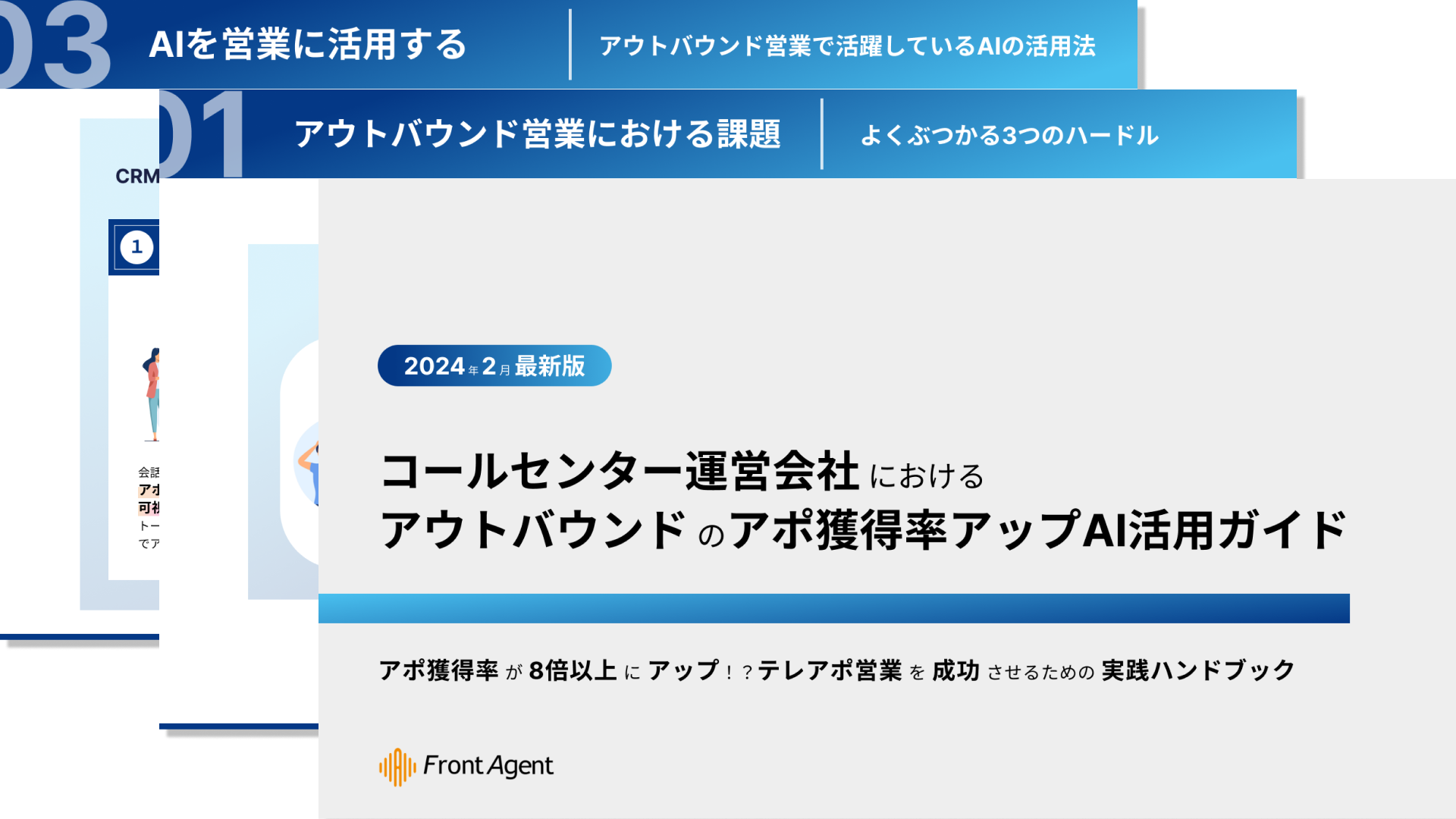 Umee Technologiesは、営業組織の効率向上と業務効率化をサポートするために、商談アシストプラットフォーム「Front Agent」を開発・運用しております。コールセンター業のお客様への伴走支援を通して、業界共通の営業活動における課題が浮かび上がりました。これらの課題を克服し、業界全体の生産性向上を促進するために、「アポ獲得率アップAI活用ガイド」を制作いたしました。
