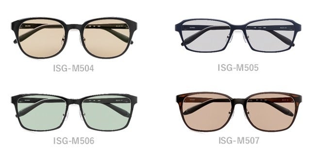 知的でシャープな印象のスクエアモデル。ISG-M505に比べ天地幅があるため顔に馴染みやすく、柔らかい印象を演出します。カラーは、ブラウン、デミブラウン、ブラック、ブラックマットの4色です。※ ブラックマットに調光レンズを組み合わせています