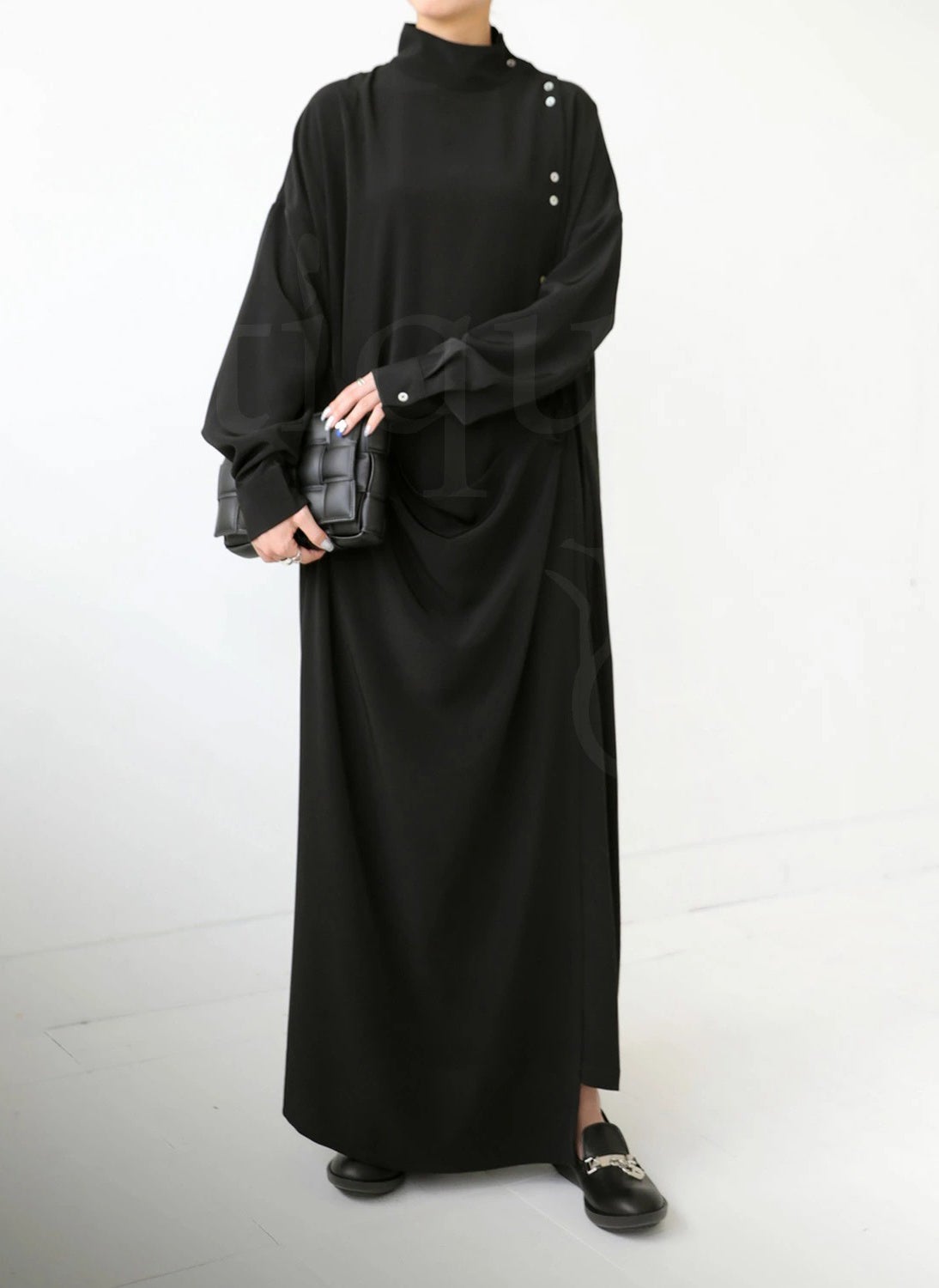 黒でまとめたワントーンコーデがこちら。足元でキラリと光るチャームがアクセントになり、スタイリッシュなコーデに大人可愛さをプラスしてくれます。