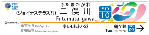 追加実施する「GREEN×EXPO 2027」特別仕様デザインの駅名標について