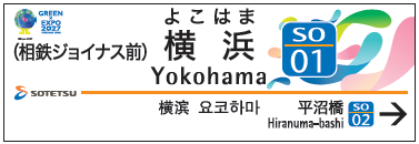 横浜駅、星川駅、二俣川駅、緑園都市駅にある駅名標