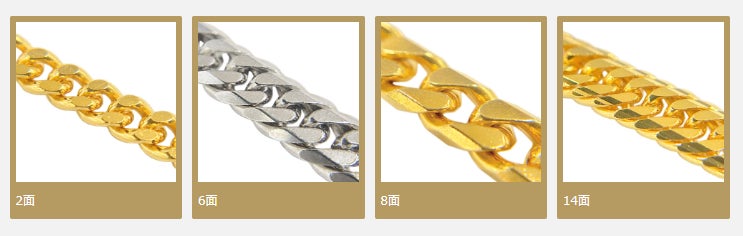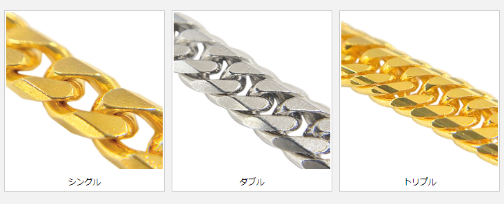 その昔はバブル全盛期に人気だった喜平アクセサリーですが、近年はスポーツ選手やストリートミュージシャンをはじめ若者を中心に身につける方が増えてきました。面数と呼ばれる鎖の環(コマ)を加工することで平面の数や形状が異なることで光の輝きが変わります。また編み方もシングル・ダブル・トリプルの3種類が存在します。