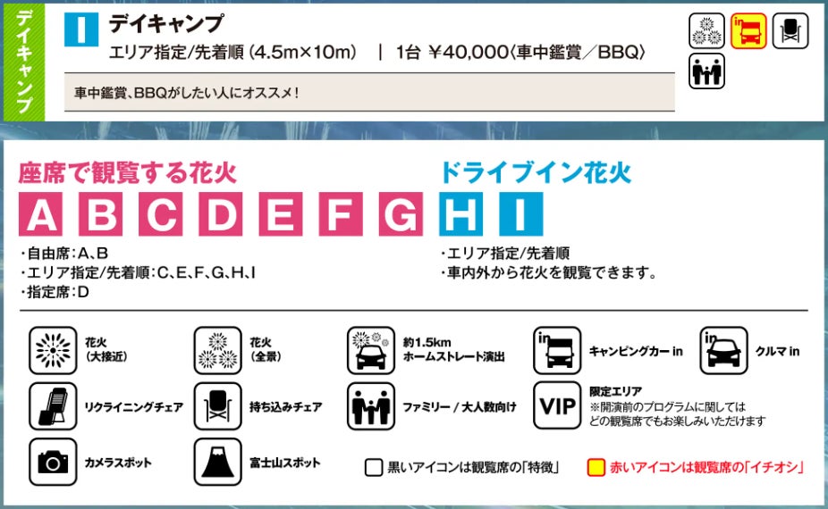 富⼠⼭の⽬前で打ち上がる世界最⾼峰の花⽕と、国際サーキット「富⼠スピードウェイ」を舞台に繰り 広げられる花⽕とモータースポーツとの“競演”は、まさに“vs”と表されるに相応しい“ここだけの体験”となります。