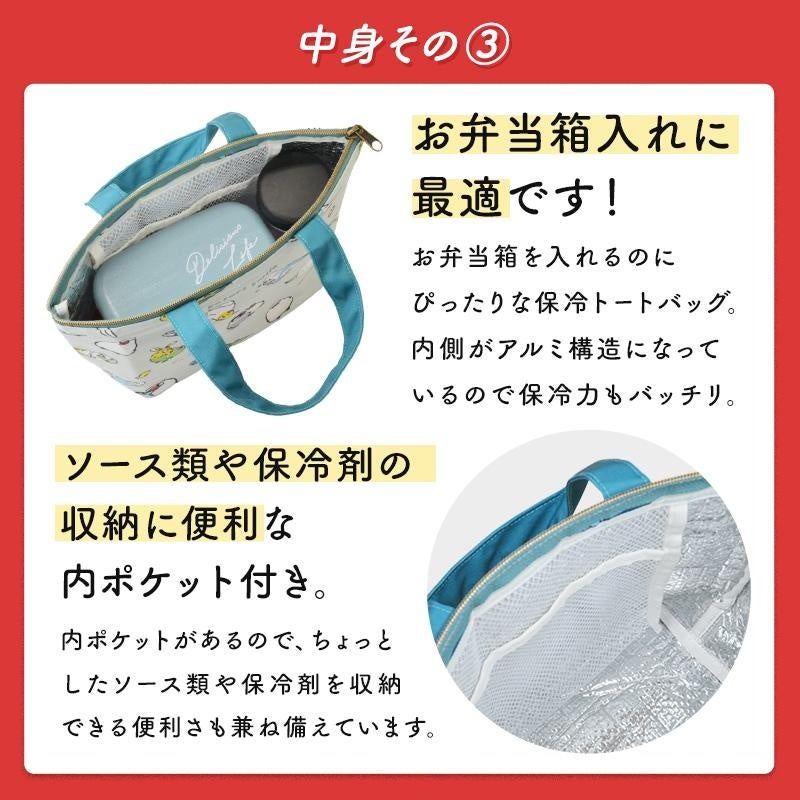 ランチボックスやボトルが入る、サブバッグにピッタリなトートバッグです。内側はアルミ構造・保冷剤入れに最適なメッシュポケット付きなので、保冷機能もばっちり!