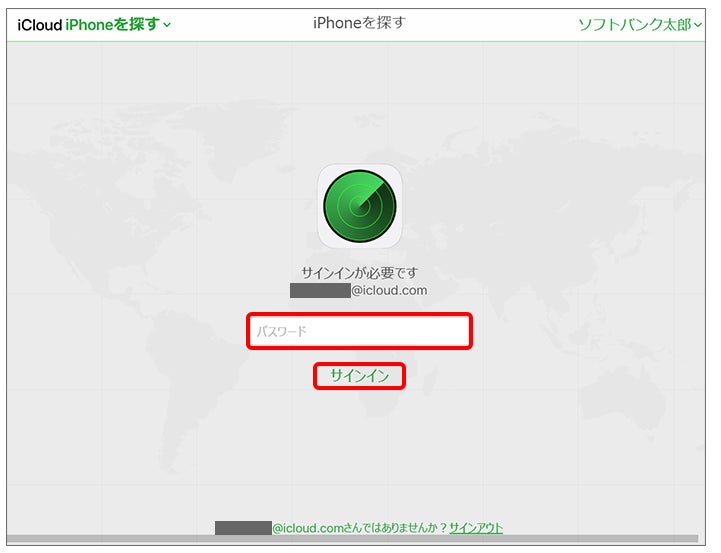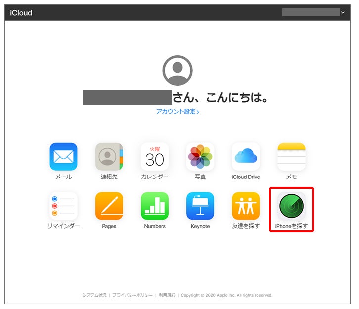Step1:ブラウザからiCloudにサインインして「iPhoneを探す」を選択します。