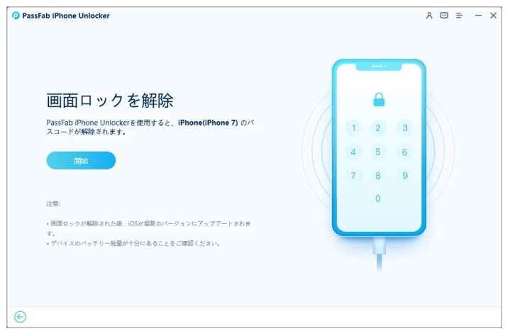 Step2:PassFab iPhone Unlockerを起動して「解除開始」をクリックします。