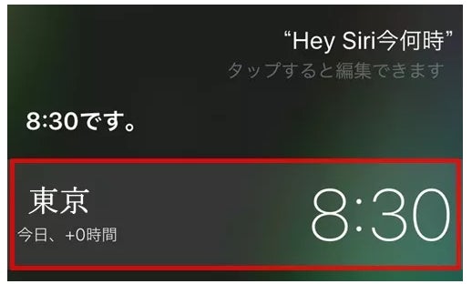 Step1:「Hey Siri、いま何時?」と話しかけると、画面に時間が表示されるのでタップします。