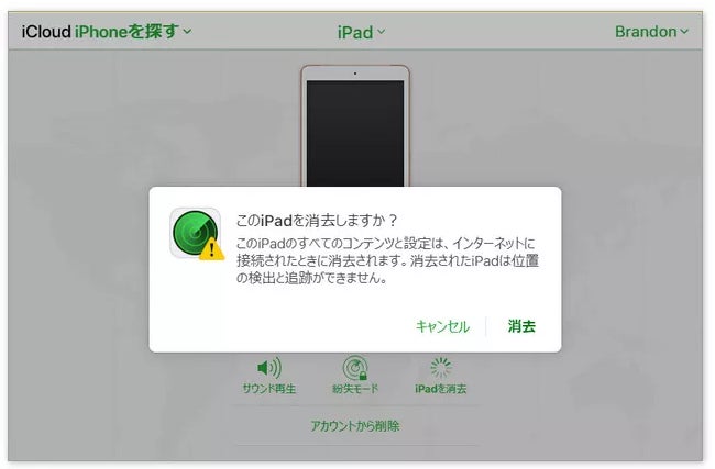 Step5:「iPadを消去」を押すと確認画面が表示されるので「消去」をクリックします。