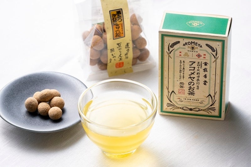 焦がしきなこと黒みつパウダーの絶妙なバランスで味付けされた「黒みつきなこ大豆」は、わらび餅のような味わいを連想させ、黒みつのほのかな甘さと煎茶の爽やかな香りが口の中に広がります。