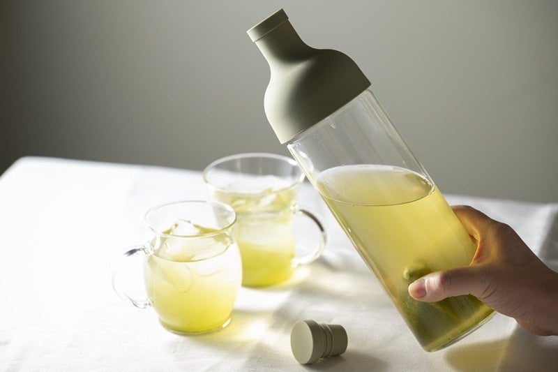 ワインのように食事の時に水出し茶を愉しめる、ワインボトル型のフィルターインボトル。注口部分にフィルターがセットされています。そのまま注げて簡単に洗える、便利な水出し茶ボトルです。