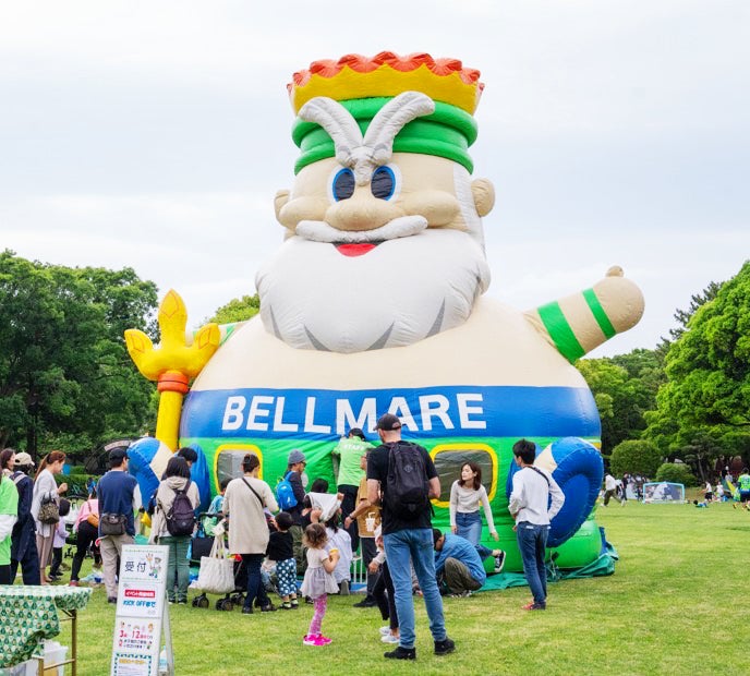 湘南ベルマーレ公式マスコットキングベルI世が大磯ロングビーチに遊びに来ます。キングベルふわふわとキックターゲットもお楽しみいただけます。