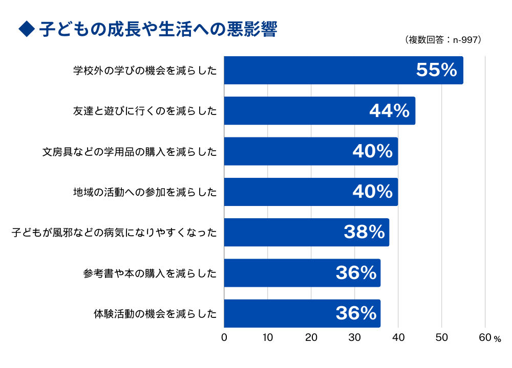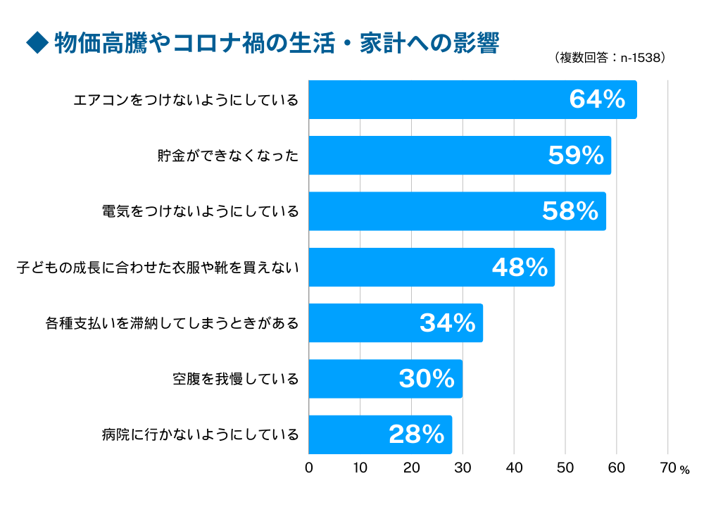 2023年度にキッズドアが行った調査より、物価高騰の中で困窮家庭の子どもたちがこれまでになく厳しい生活の状況にあることがわかっています。
