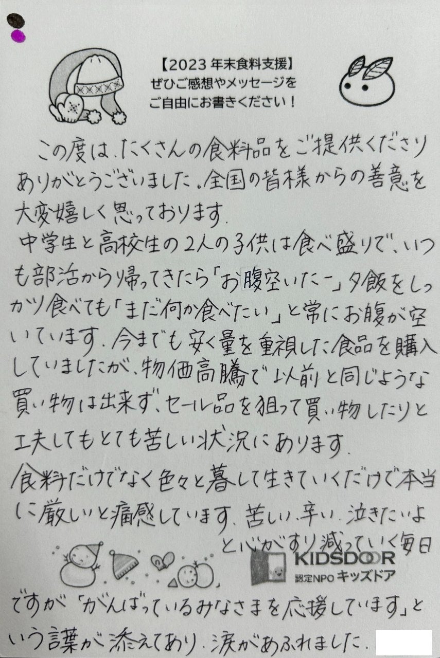 ご家庭からの苦しいメッセージ(2023年度 冬の食料支援時)