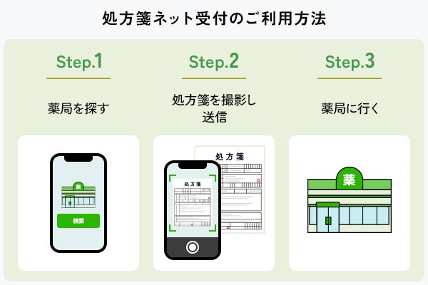 WEBサイト「EPARKくすりの窓口」または、電子版お薬手帳「EPARKお薬手帳アプリ」から処方箋画像を送信して、患者様の都合に合わせて、薬局でお薬を受け取ることができるサービスです。