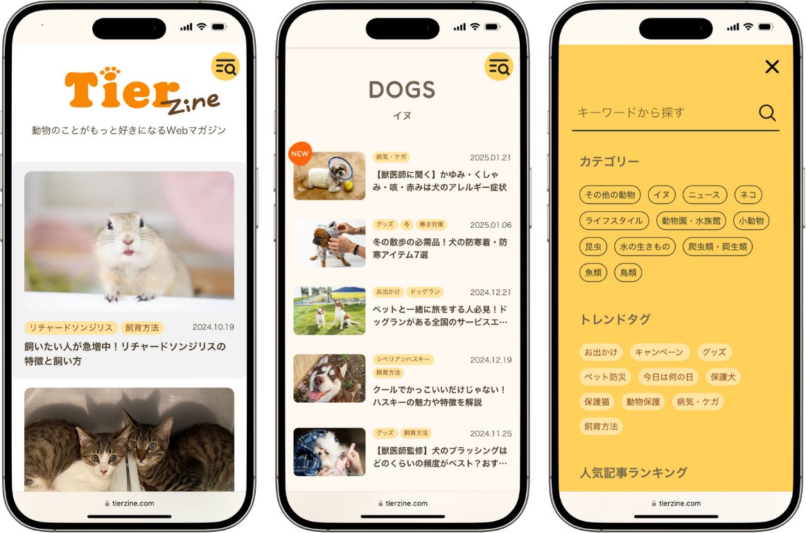 「TierZine」(https://tierzine.com/)は、全ての動物に関する情報発信メディアです。動物のかわいい面だけではなく環境問題や絶滅危惧種、動物愛護といった問題点にも触れており、専門家が監修する信ぴょう性の高い記事を発信しています。