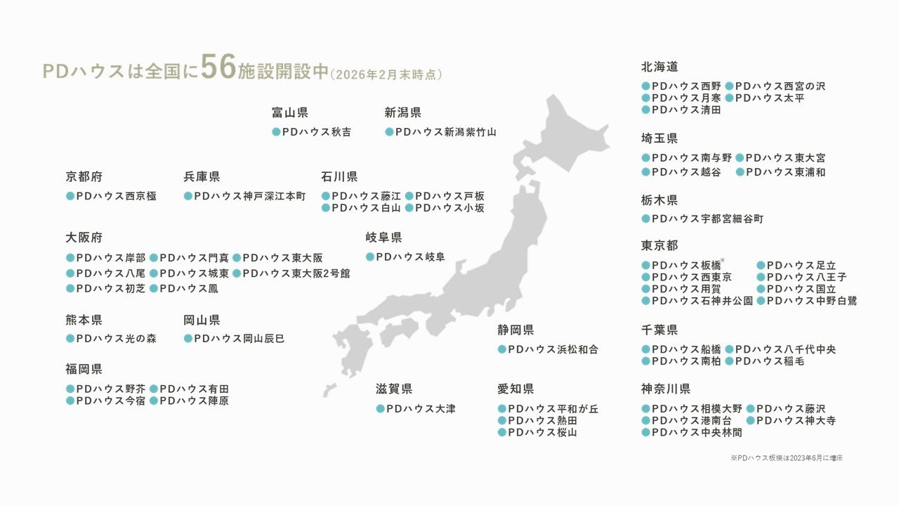 PDハウスは全国に56施設開設中(2026年2月末時点)