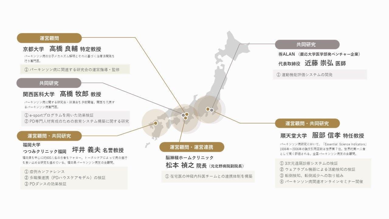 全国のパーキンソン病研究トップドクターと研究を進め、より効果的な新サービス創造を目指します。