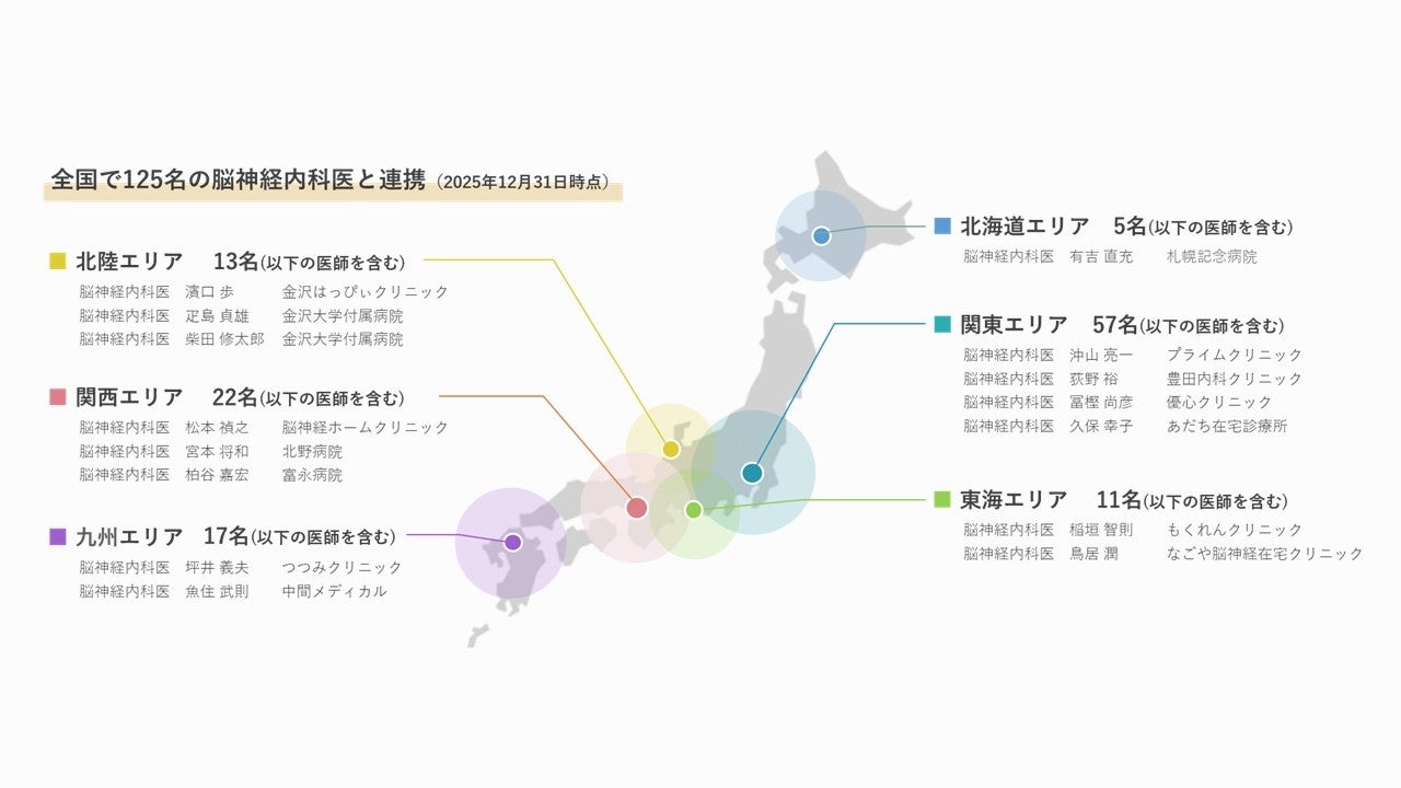 国内約600名(推定)の訪問診療対応医の内125名と連携を実現、今後も開設に伴い拡大していきます。