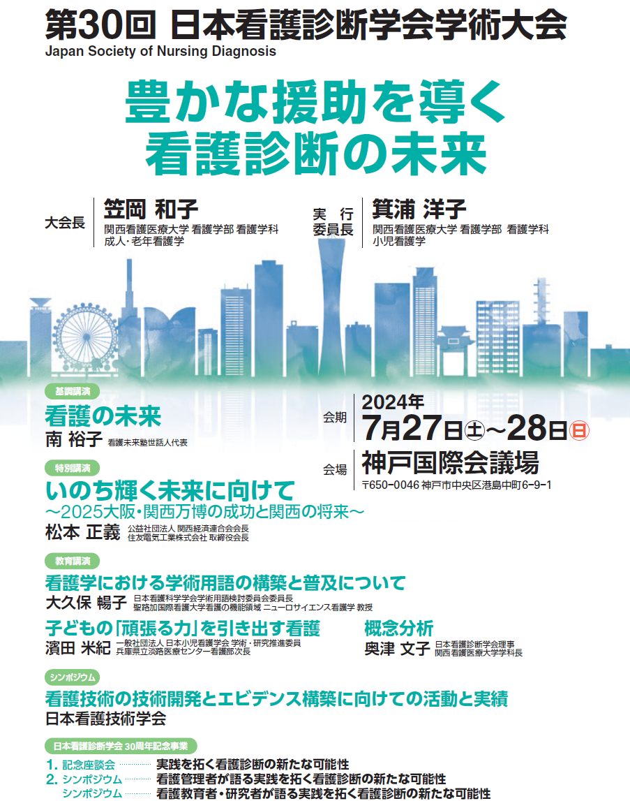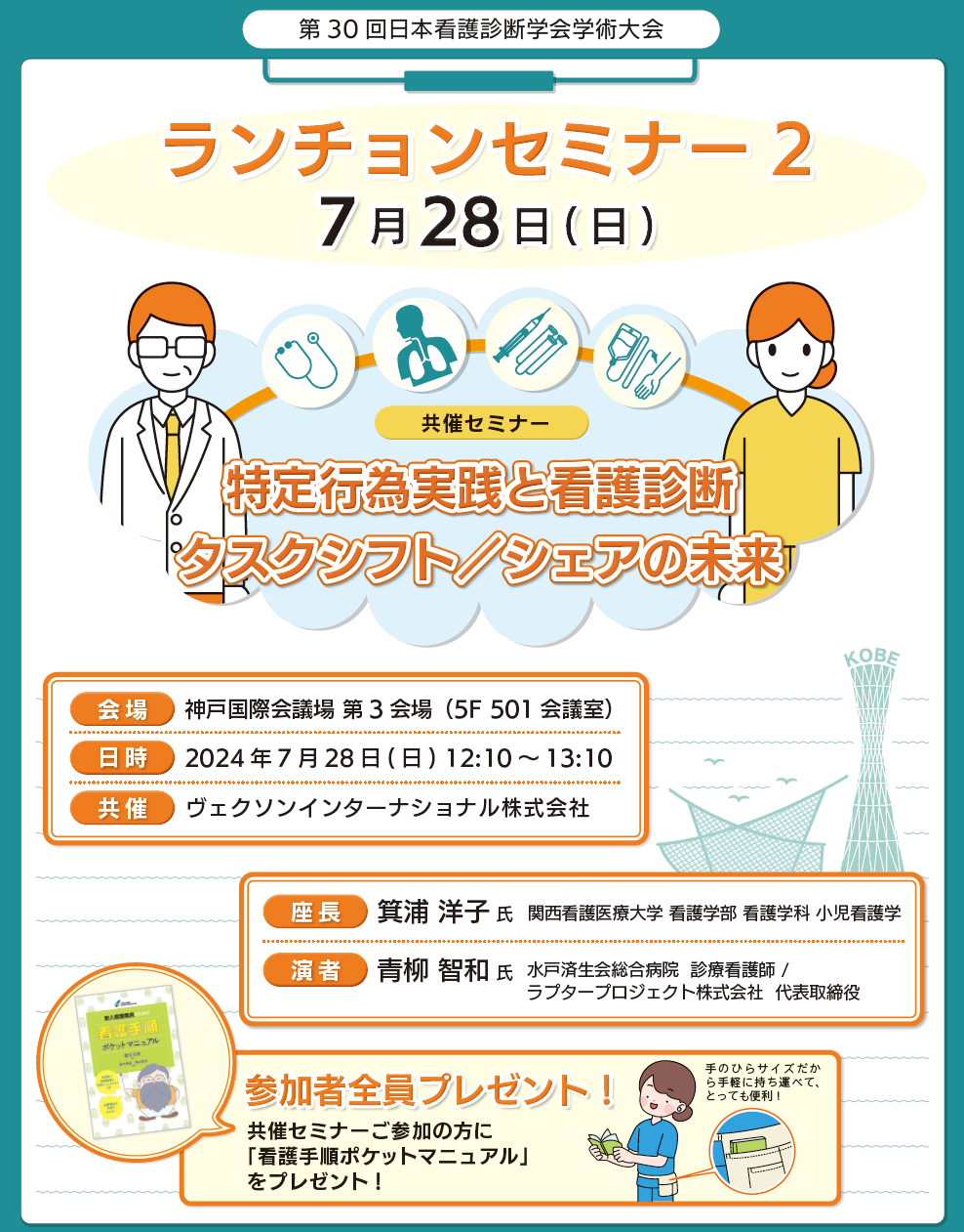 7月27日(土)・28日(日)兵庫県神戸市で開催の「第30回日本看護診断学会学術大会」にてランチョンセミナーを共催いたします