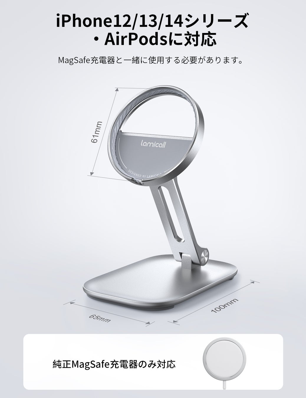 コンシューマ向けスマートフォンやパソコンのアクセサリー製品を製造・販売するLamicallは、iPhone12/13/14シリーズ・AirPodsの純正磁気ワイヤレス充電器に対応したMagSafe対応の折りたたみ式充電スタンドを販売することをお知らせいたします。