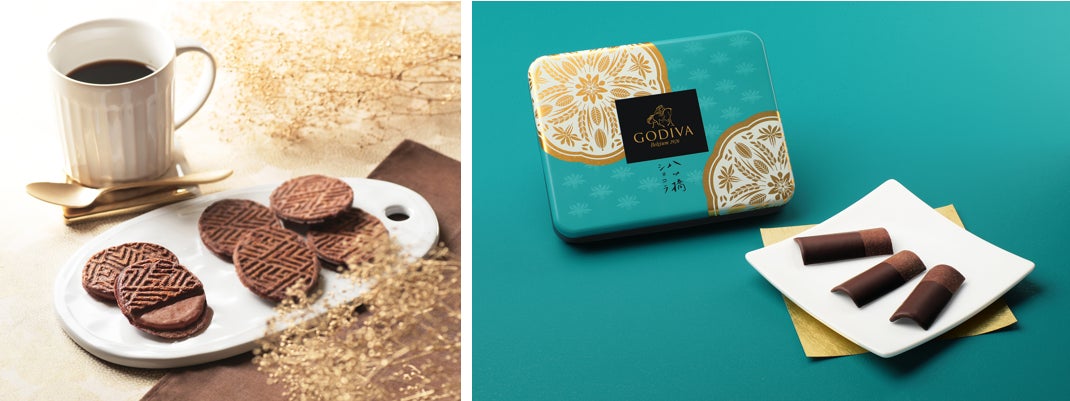 口溶けなめらかなガナッシュ仕立てのチョコレートを、ココア風味の生八つ橋で包んだ「生八つ橋 ガナッシュ仕立て」をはじめ、「八ッ橋ショコラ」や「クリスピーショコラサンド」を販売。