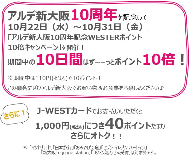 <<アルデ新大阪>>期間限定ショップ、WESTERポイント10倍アップなど