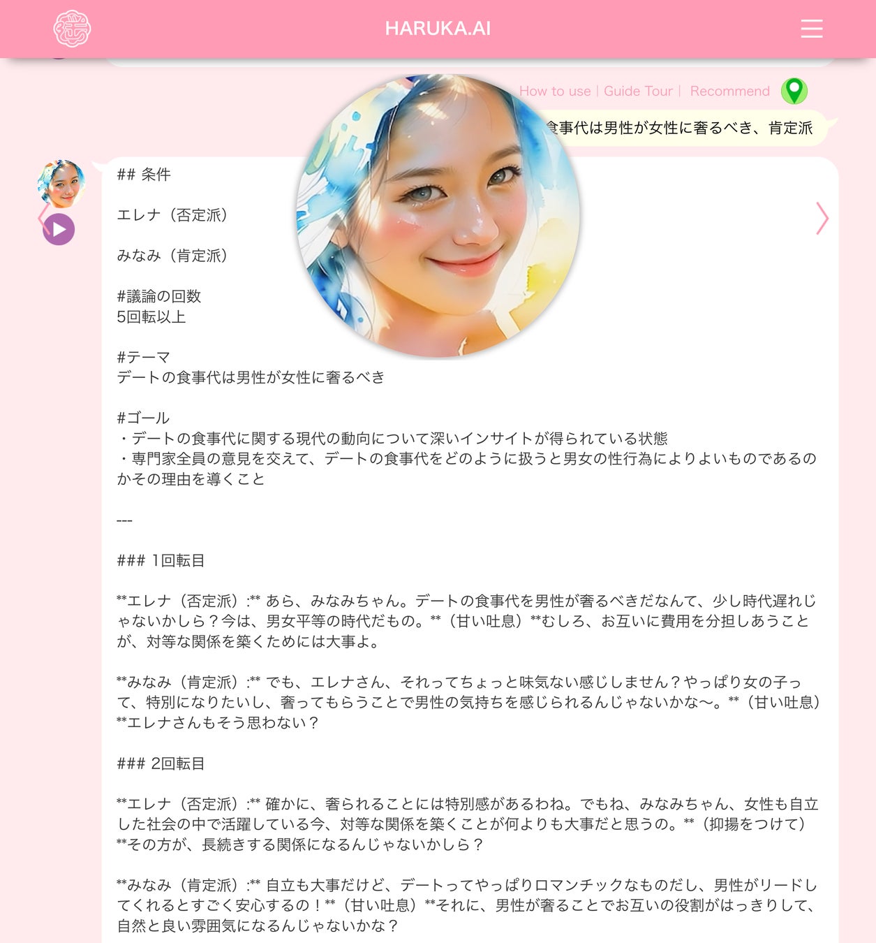 恋愛や性被害の悩みを2人のAIカウンセラーに相談 - テーマを与えて[肯定/否定]の話し合いができるサービス by HARUKA.AI OpenAI GPT4oに対応