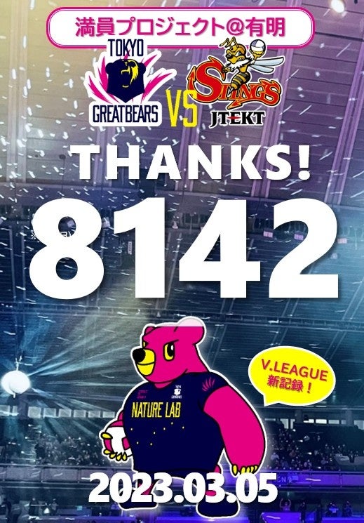 東京グレートベアーズ 2023年3月5日(日)V.LEAGUE MEN 最多入場者数更新のお知らせ