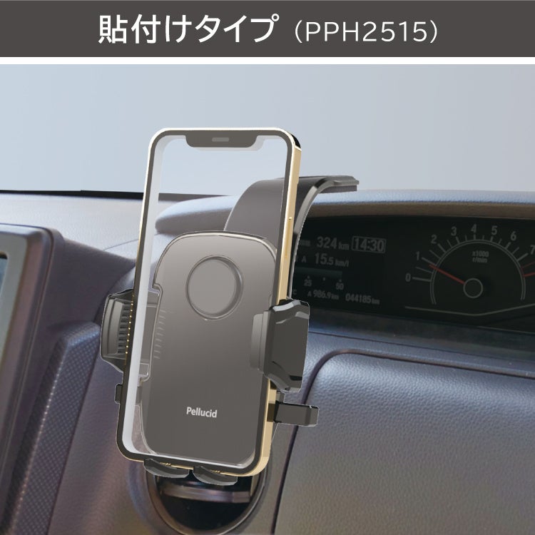 ペルシード ワンタッチ開閉スマホホルダー フレキアーム ダッシュボード取付タイプ【Pellucid Phone Holder 品番:PPH2512(吸盤タイプ)PPH2515(貼付けタイプ)】