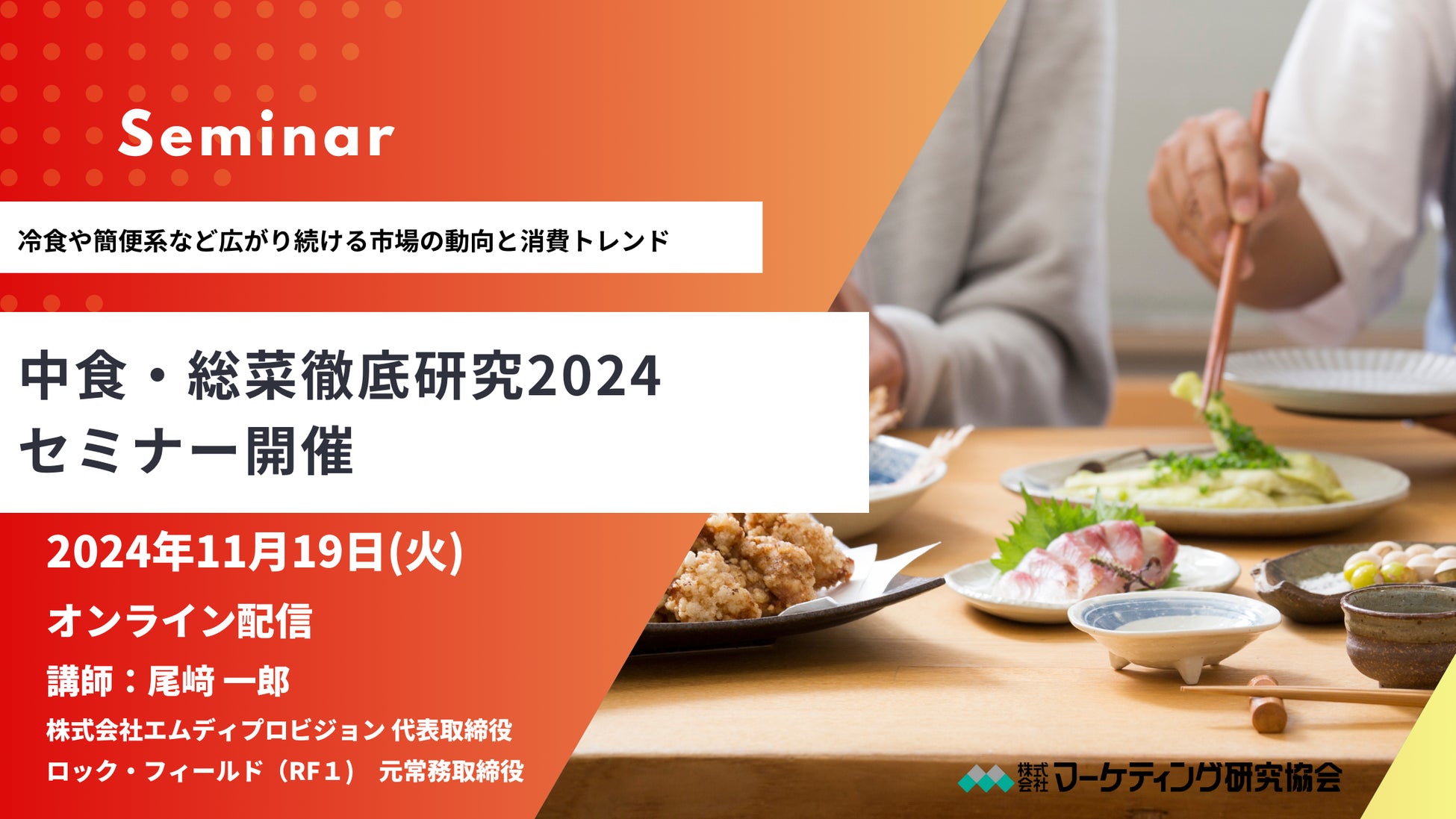 株式会社マーケティング研究協会は2024年11月19日にオンラインセミナー「中食・総菜徹底研究」を開催します。