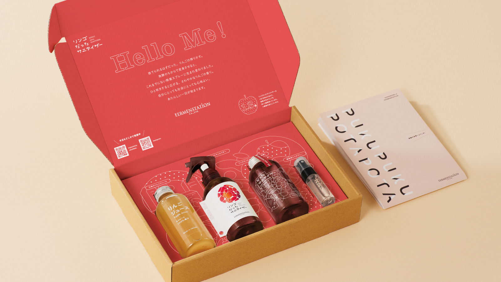廃棄されるりんごの搾りかすから作ったやさしい香りの除菌スプレーで、「除菌をポジティブ」にするというコンセプトのもと、使ったときの「心地よさ」と社会貢献の「心地よさ」を体現するプロダクトとして開発。