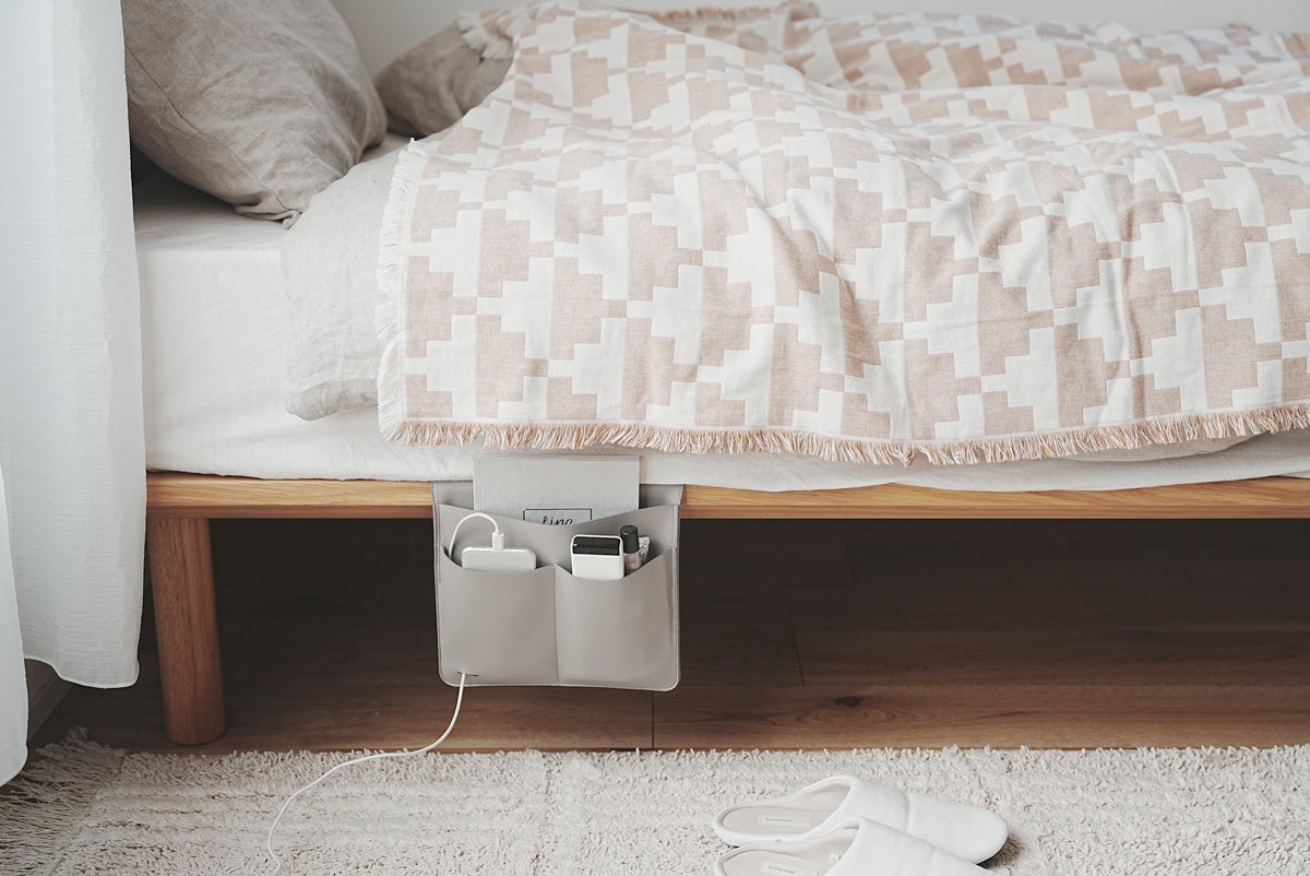 ベッドやソファに簡単設置で、リモコン類もスマホもすっきり片付く収納スペースが誕生。小物整理に便利な「bon moment サイドポケット」が、1月25日(水)新発売。