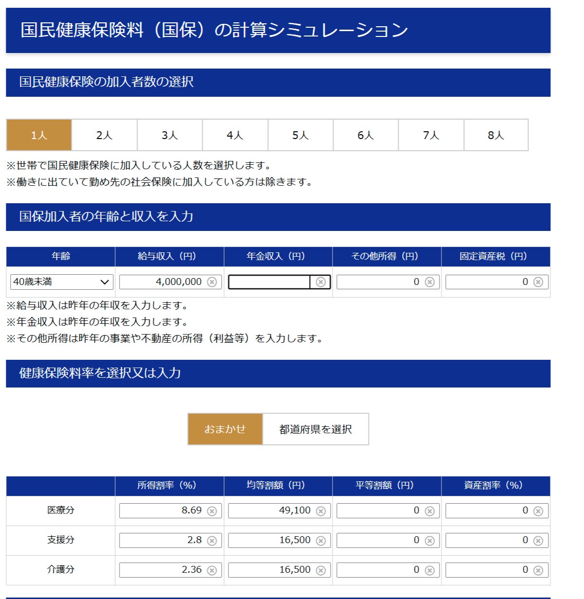 国民健康保険料(国保)の概算ならば「国民健康保険料(国保)の計算シミュレーション」ツール