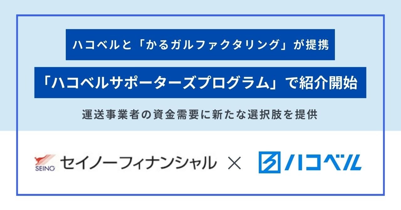 このたび、運送会社や個人ドライバーを支援する「ハコベルサポーターズプログラム」に、セイノーフィナンシャルが展開する事業者向け金融サービス『かるガルファクタリング』の提携が決定、ご紹介を開始いたしました。
