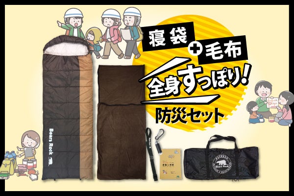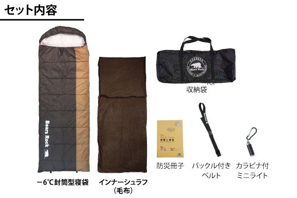 今回は冬でも使えるよう、寝袋とインナーシュラフをセットにした防災セットをご用意しました。