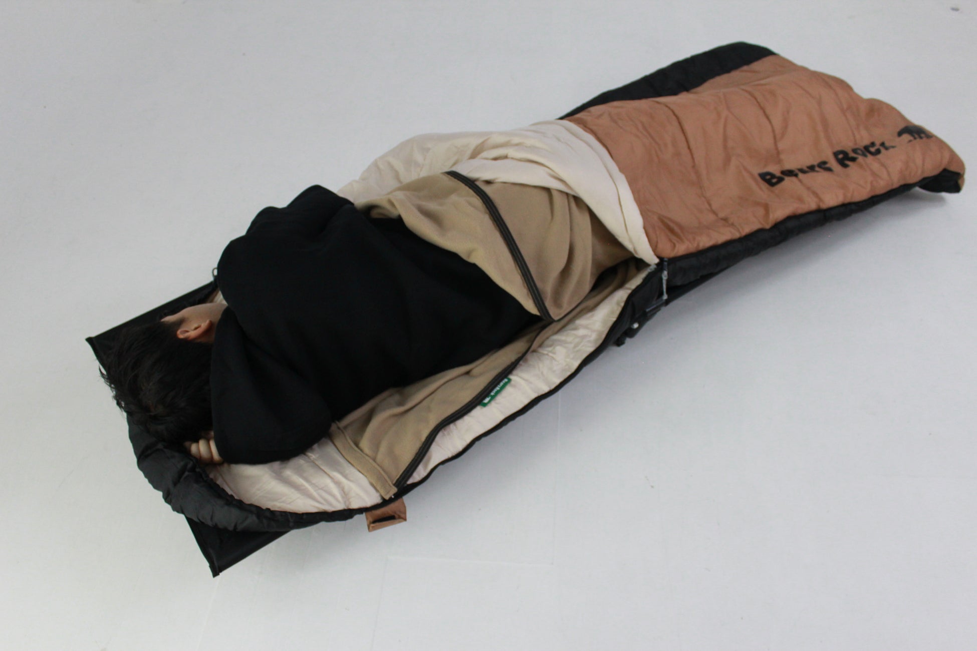 Bears Rockの封筒型寝袋は横幅が広めで布団のようにゆったりと眠ることができます。