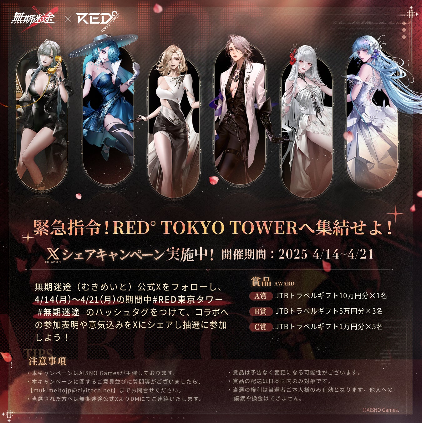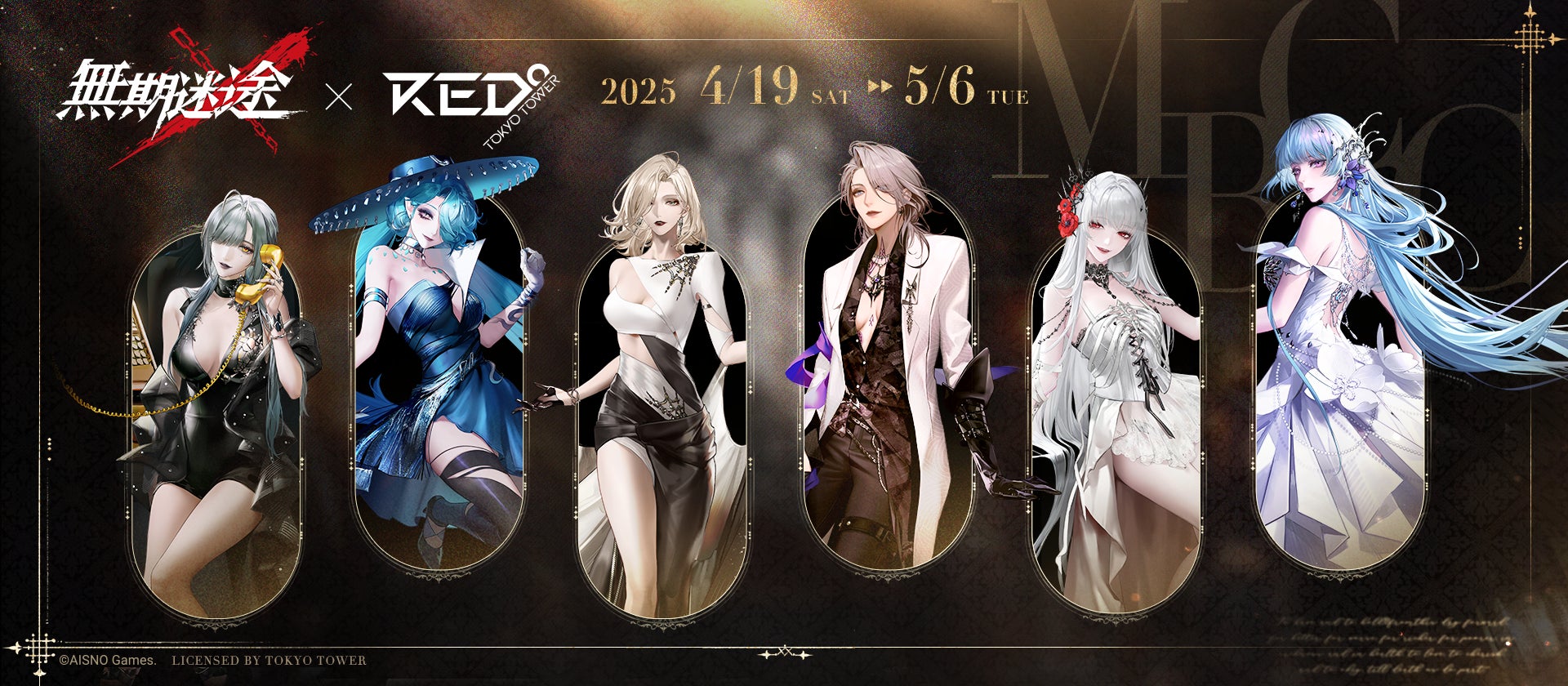 AISNO Gamesがパブリッシングを行うダウンロード無料のスマホゲーム、罪悪都市プリズン戦略RPG『無期迷途』において、2025年4月19日(土)~2025年5月6日(火)の期間、RED° TOKYO TOWERとのコラボを開催いたします。
