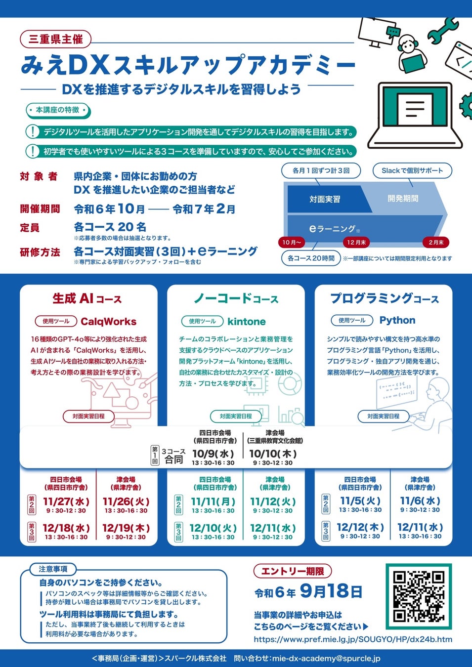 スパークル、三重県の中小企業向けDX推進リスキリング事業としてDXスキルアップアカデミー開催