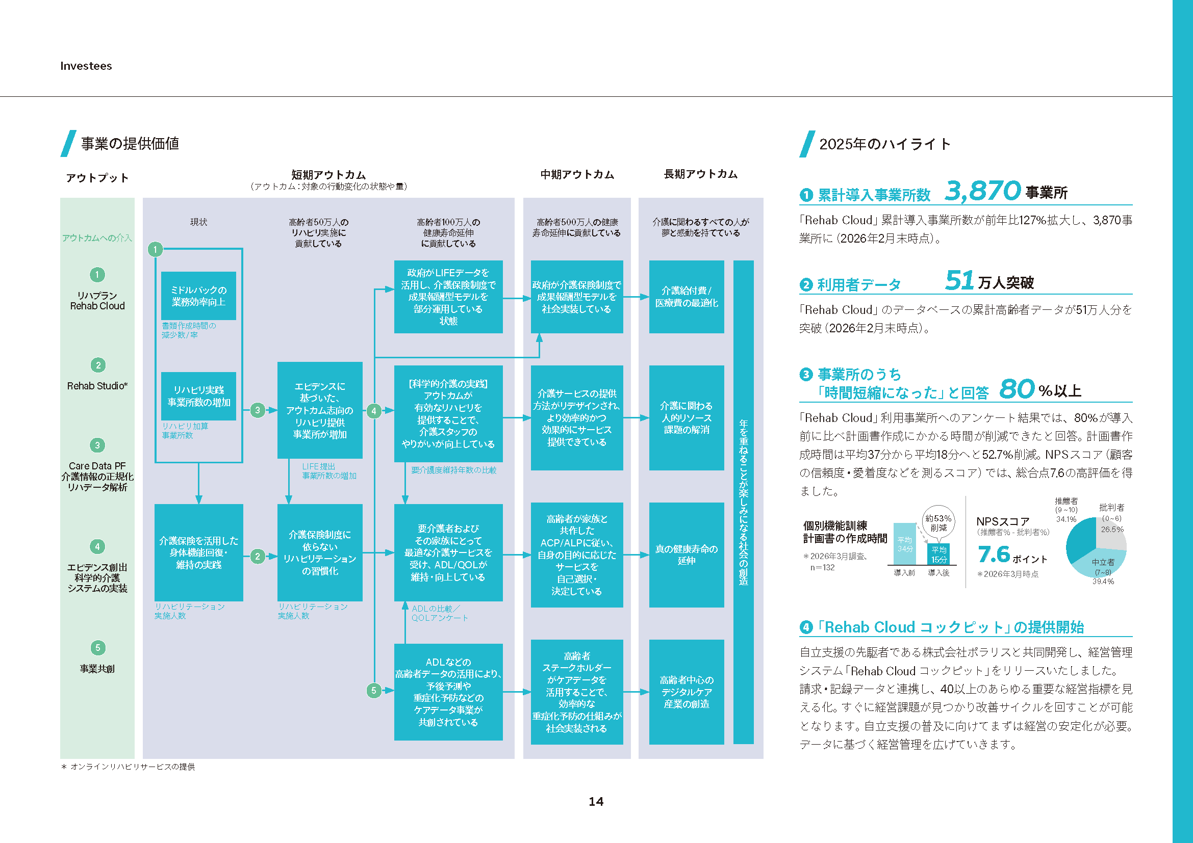 国内におけるインパクト投資の黎明期に開始した同ファンドでは、介護領域の構造を可視化する「課題デザインマップ」の開発や、レスポンシブル・イグジット、インパクトIPOの実践など、先駆的な取り組みを積み重ねてきました。