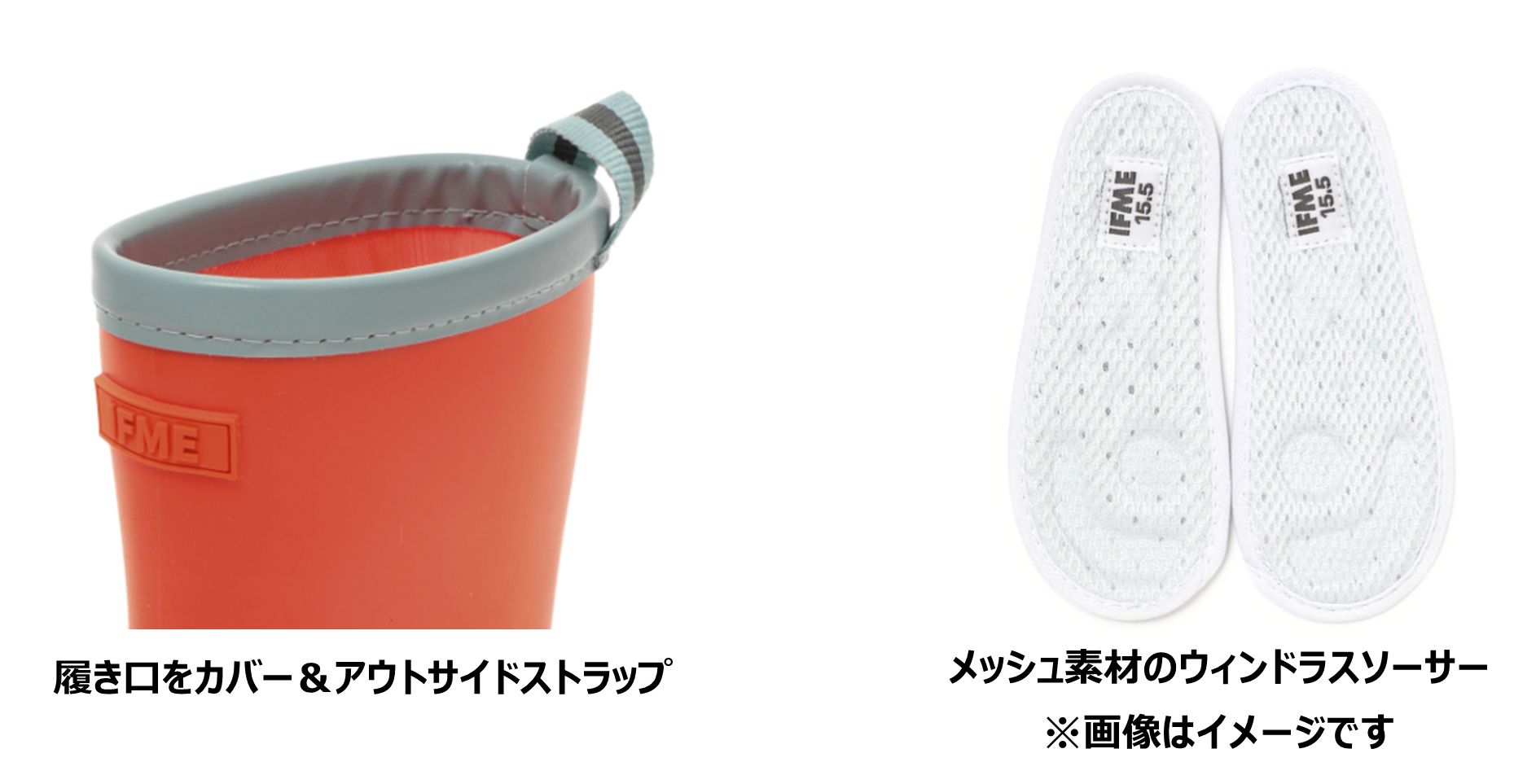 子ども自身での履きやすさに配慮した「アウトサイドストラップ」や、子どもの健やかな足の成長を育むインソール「ウィンドラスソーサー ®」など IFME のオリジナル機能を搭載しています。 IFME公式ウェブサイト: https://ifme.jp/