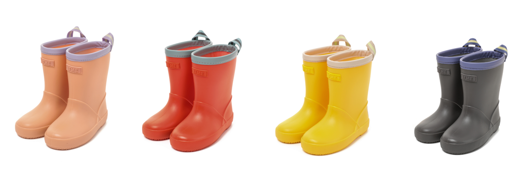 IFMEのレインブーツは、落ち着いた色合いに、すっきりとしたシンプルなデザインが特徴です。子ども用のレインブーツはカラフルな色合いやデザインが多く、お洋服に合わせにくいという懸念があるところ、IFMEのレインブーツは、普段のファッションにも合わせやすいデザインで、雨の日のお散歩や通学まで、幅広いシチュエーションでご使用いただけます。