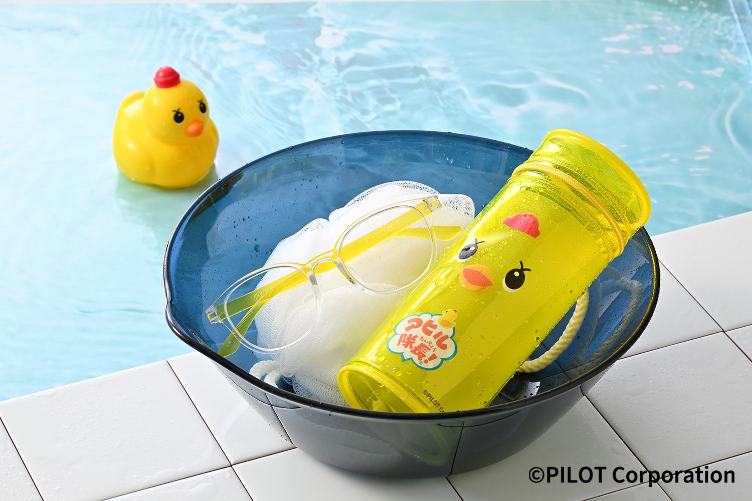 本製品は、アイウェア業界で初となる「アヒル隊長」との公式コラボレーション製品です 。テンプル(つる)部分には、ワンポイントでアヒル隊長のロゴを配置しました 。子どもから大人まで、バスタイムが楽しくなるような、遊び心のあるデザインを実現しました 。