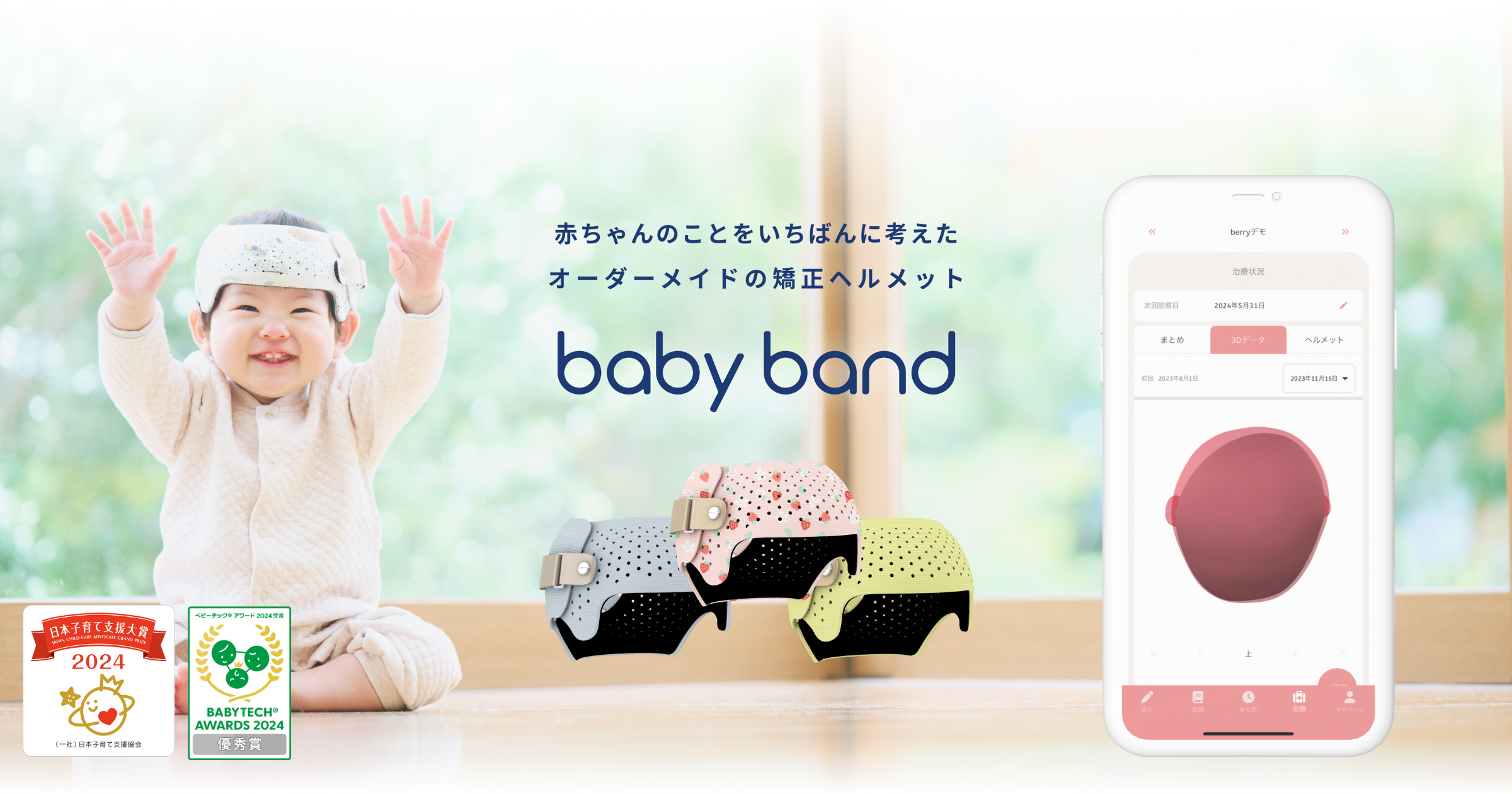 株式会社Berryは、2021年設立の医療機器ベンチャーです。「あらゆる人が必要な時に必要な医療を受けられる社会の実現」をミッションに掲げ、3Dプリント技術と3Dデータ解析を活用した乳児向け頭蓋形状矯正ヘルメット「ベビーバンド」の製造・販売を行っています。