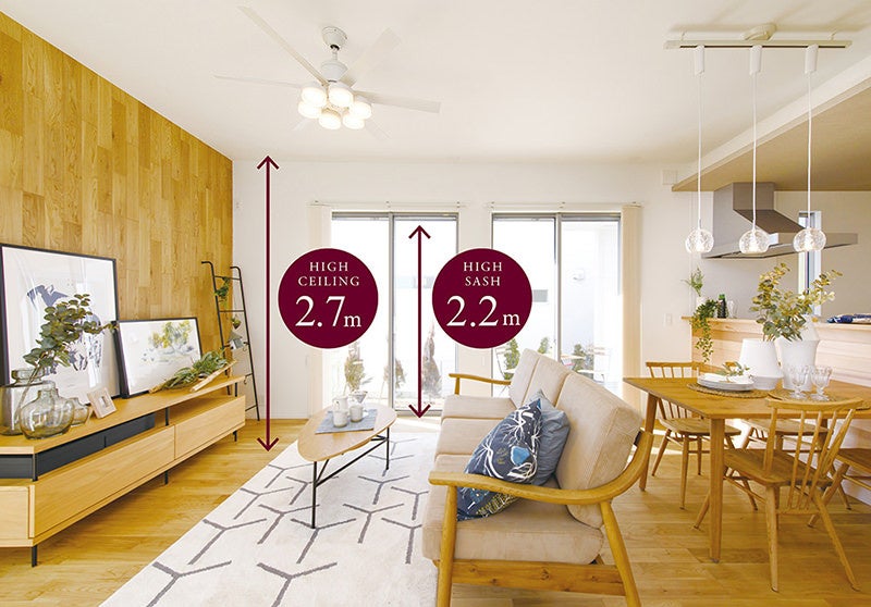開放感とゆとりを演出する天井高2.7m&ハイサッシ2.2m