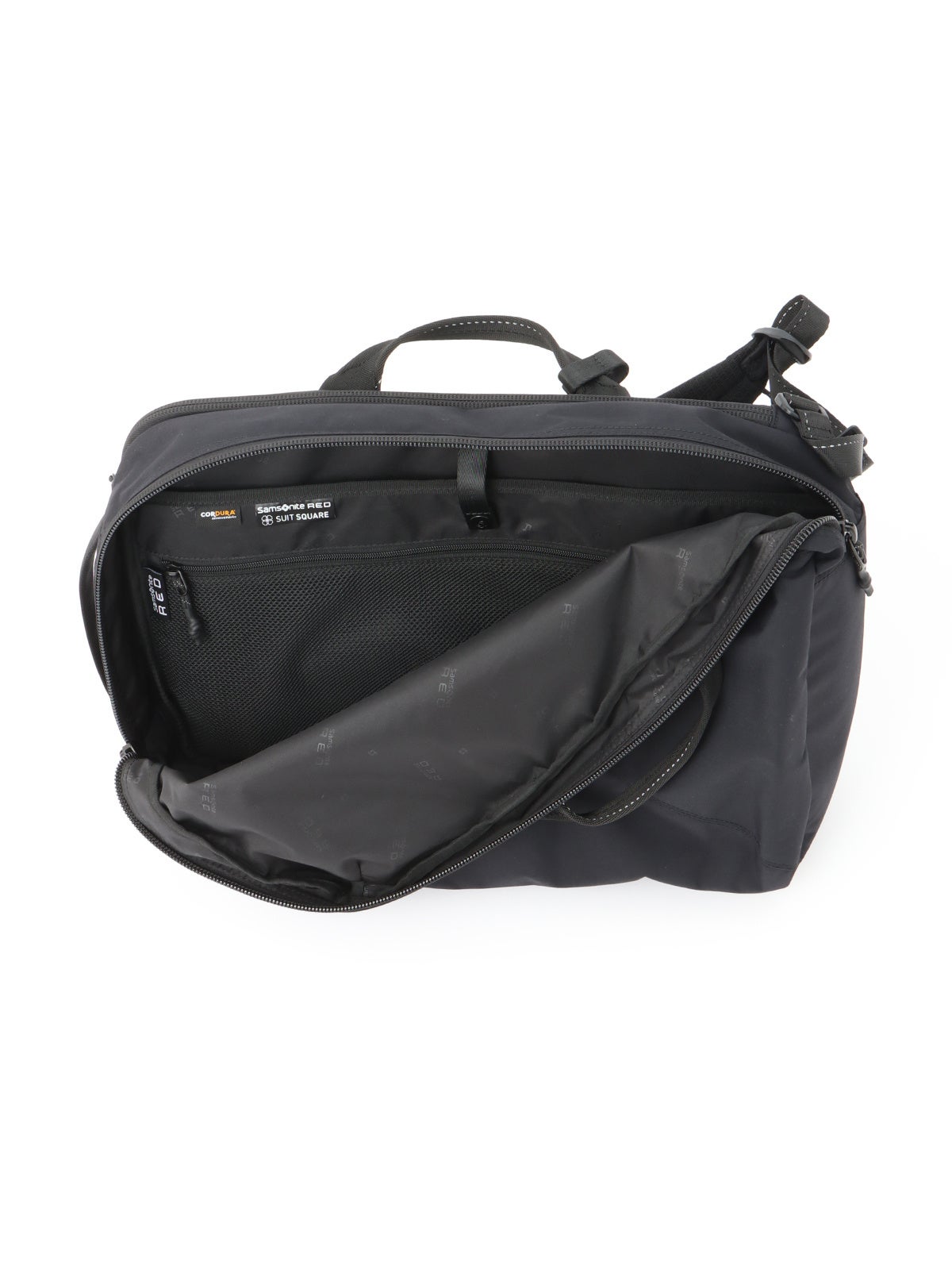 今回のバックパックは、「サムソナイト・レッド」の完全別注でスーツスクエアオリジナル商品となっています。一般的なA4サイズのPCが収納可能なバックパックよりも一回り大きくし、ビジネスパーソンの出張機会などの増加に合わせ、使い回しのしやすいサイズ感にしました。横幅は、電車通勤を考え膝の上に収まる設計にしていることに加えて、手持ちブリーフバッグとなる2WAY仕様でマルチに活躍します。また、表素材にはコーデュラナイロンを採用しているため、摩擦や切り裂き、擦り切れにも強い他、耐水性にも優れ急な雨でも安心して利用できます。さらに今回のコーデュラナイロンは、通常の生地よりも軽い素材を採用しており、一般的な同サイズのバックパックと比べ約20%の軽量化(当社従来品比)を実現しました。