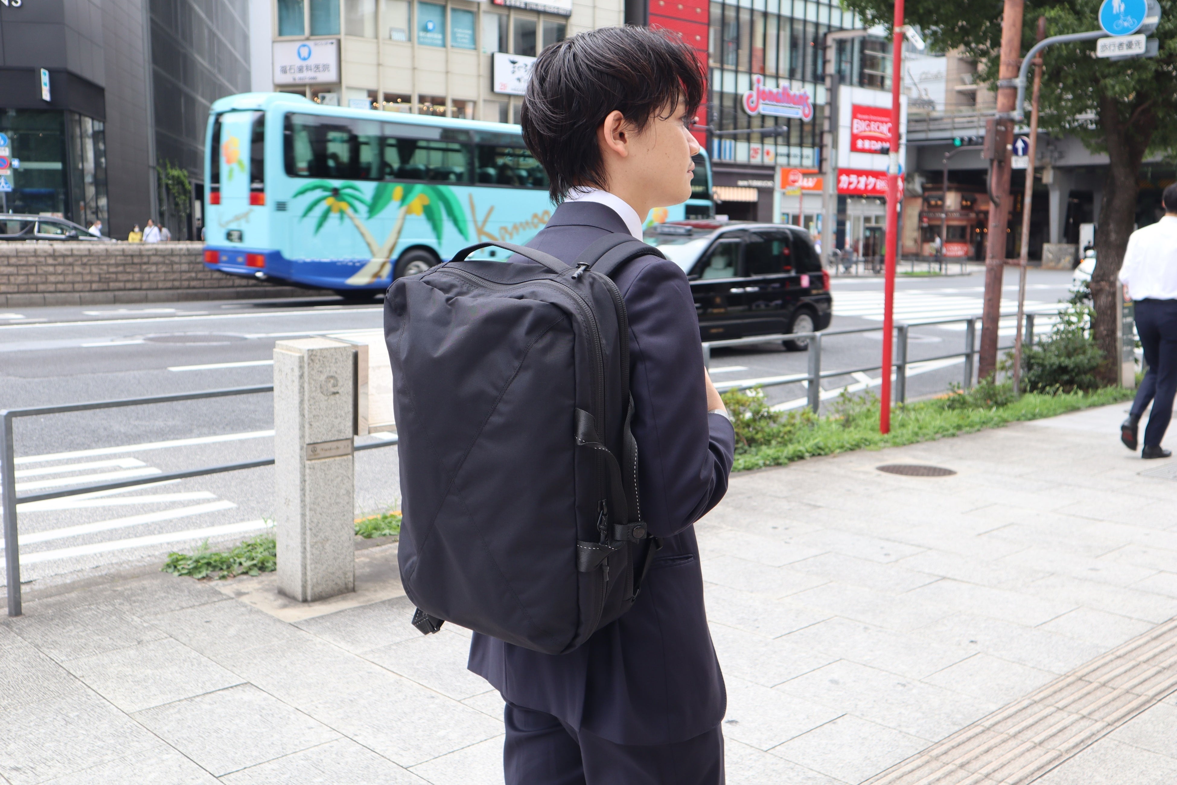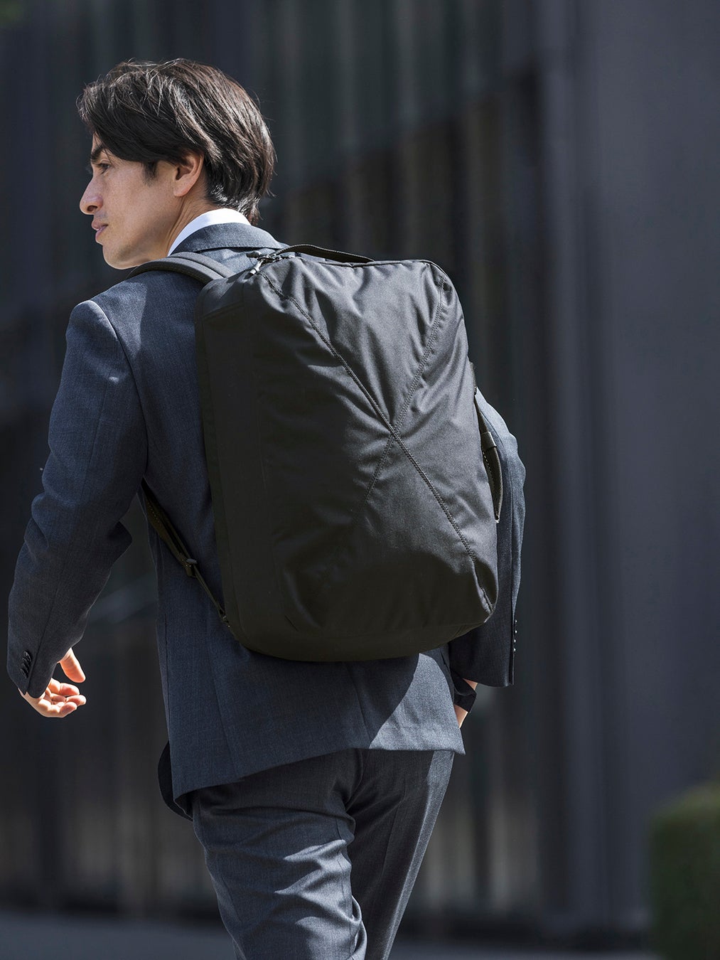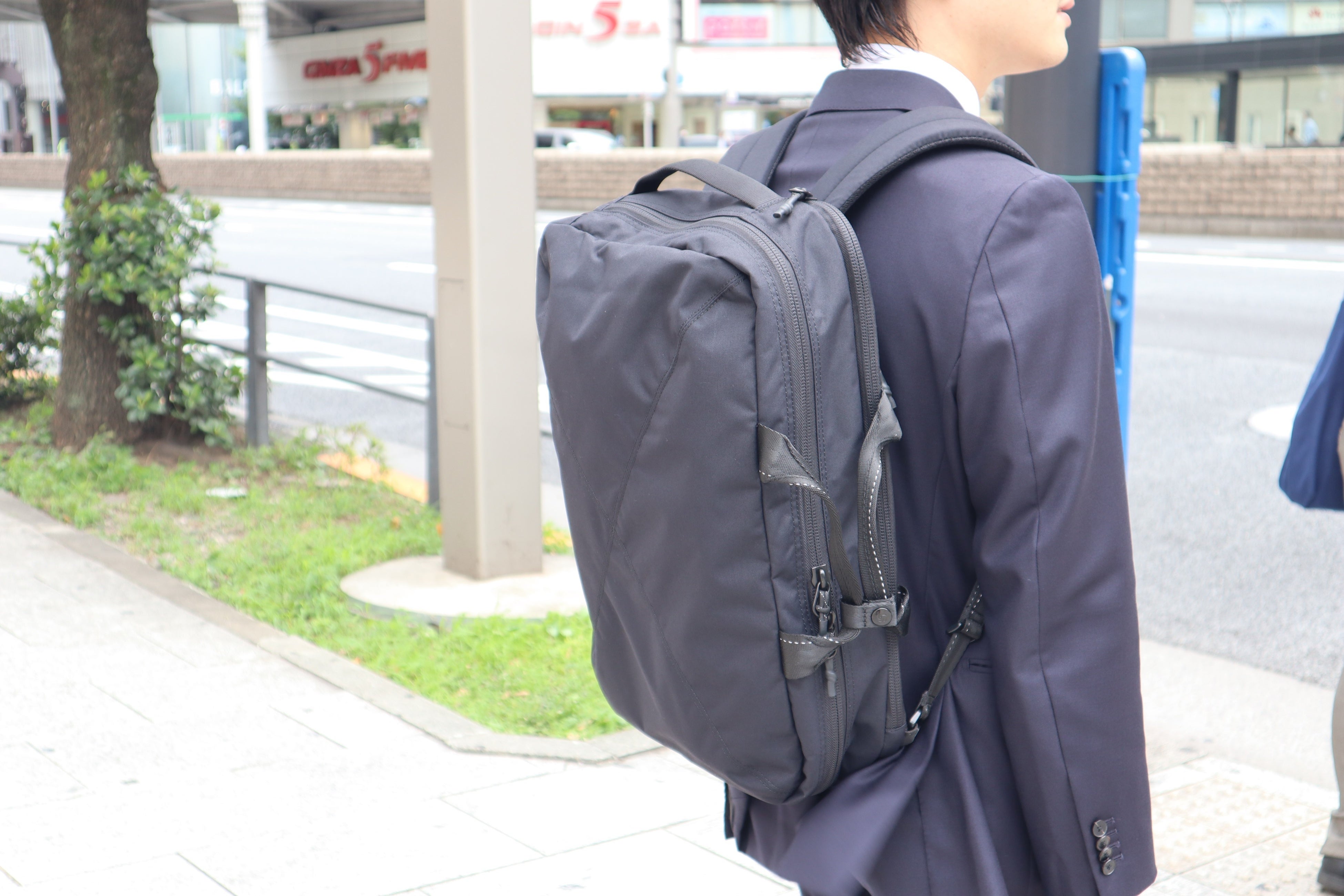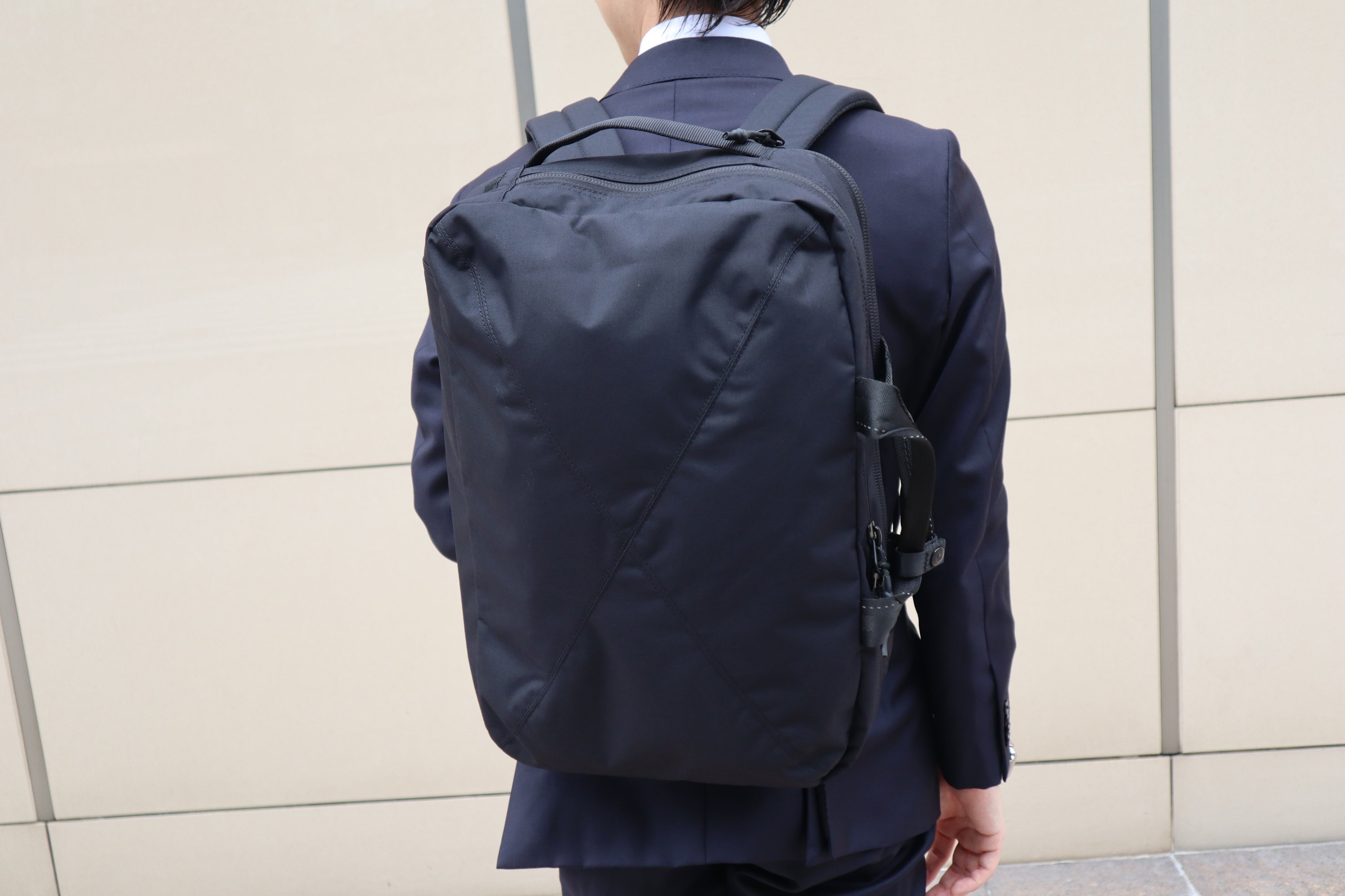 ビジネスシーンにマッチするバックパックにしたいという思いで、デザイナーやブランド担当者と何度も打ち合わせを重ね商品を企画しました。軽量性、耐久性、サイズ感などはもちろん、織ネームやタグ位置など細部まで考えシックな雰囲気になるようこだわりました。背面とショルダーハーネス裏には、目の細かいクッションを採用することで、摩擦を軽減しスーツを傷めないようにしています。