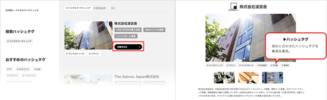 「ライブドアニュース」の記事に、掲載企業に関連付けたハッシュタグを設置します。ハッシュタグを通して、関心度の高いユーザーが貴社の会社案内ページに訪れます。