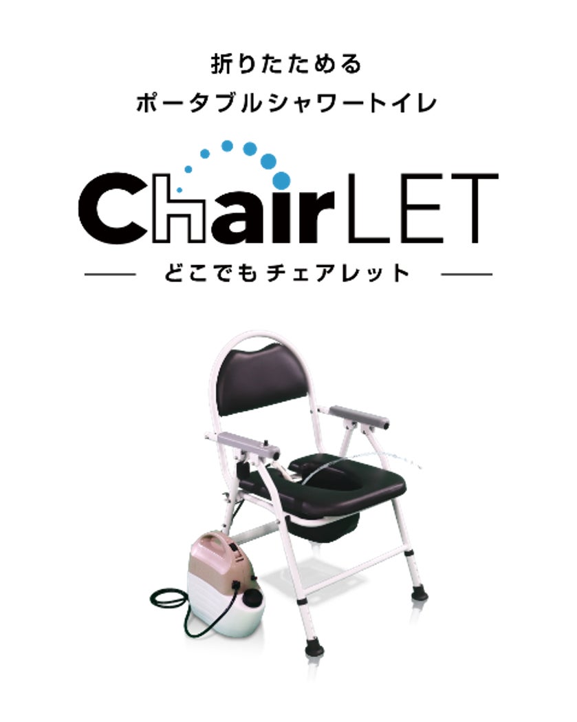 折り畳み式トイレ「どこでもチェアレット」は、コンパクトに折りたたんで保管ができるポータブルトイレです。パイプ椅子のように折り畳めて、コンパクトに保管・使用が可能。さらにおしり洗浄機能を搭載した本商品は、これまでの簡易トイレで実現が難しかった“快適性”を付加し、「簡易性」と「快適性」を両立させた新しいトイレです。サッと取り出して快適に使用できる本製品は、防災のための備蓄をはじめ、アウトドアや介護の使用にも最適です。