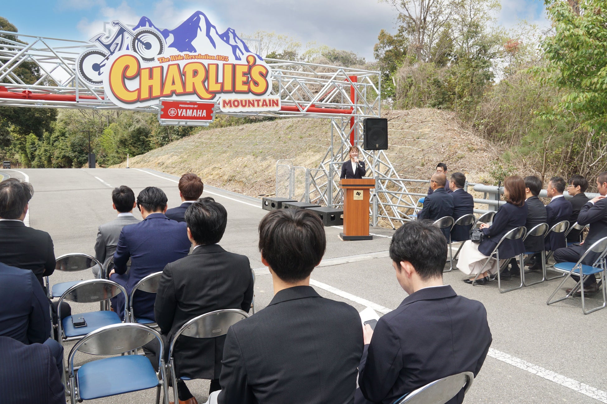 「本日は、ネスタリゾート神戸における新しい冒険の場「チャーリーズ・マウンテン」のオープニングセレモニーにお招きいただき、誠にありがとうございます。この素晴らしい新エリアの開業に心よりお祝い申し上げます。ヤマハ発動機は、このプロジェクトのスポンサーとして参加させていただけることを大変光栄に思っております。